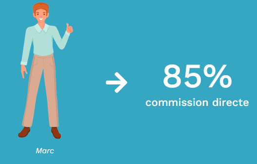 Lorsqu’il finalisera sa première transaction, Marc pourra percevoir une rémunération allant jusqu’à 85 % des honoraires liés à cette vente.